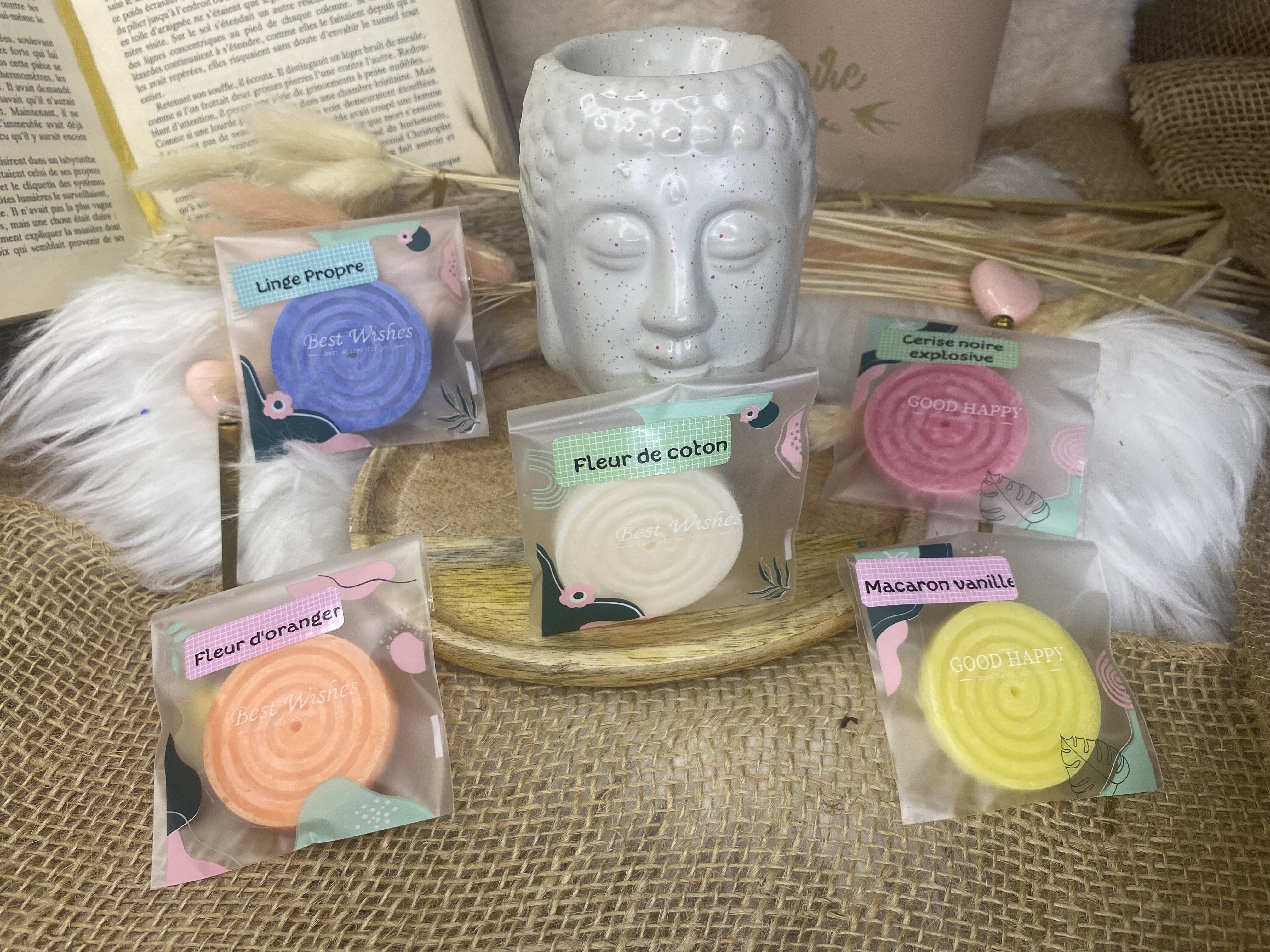 - Assortiment de fondants de cire : Découvrez notre sélection Best Seller : Cerise Noire Explosive, Fleurs d'oranger, Linge Propre, Fleur de coton et macaron Vanille