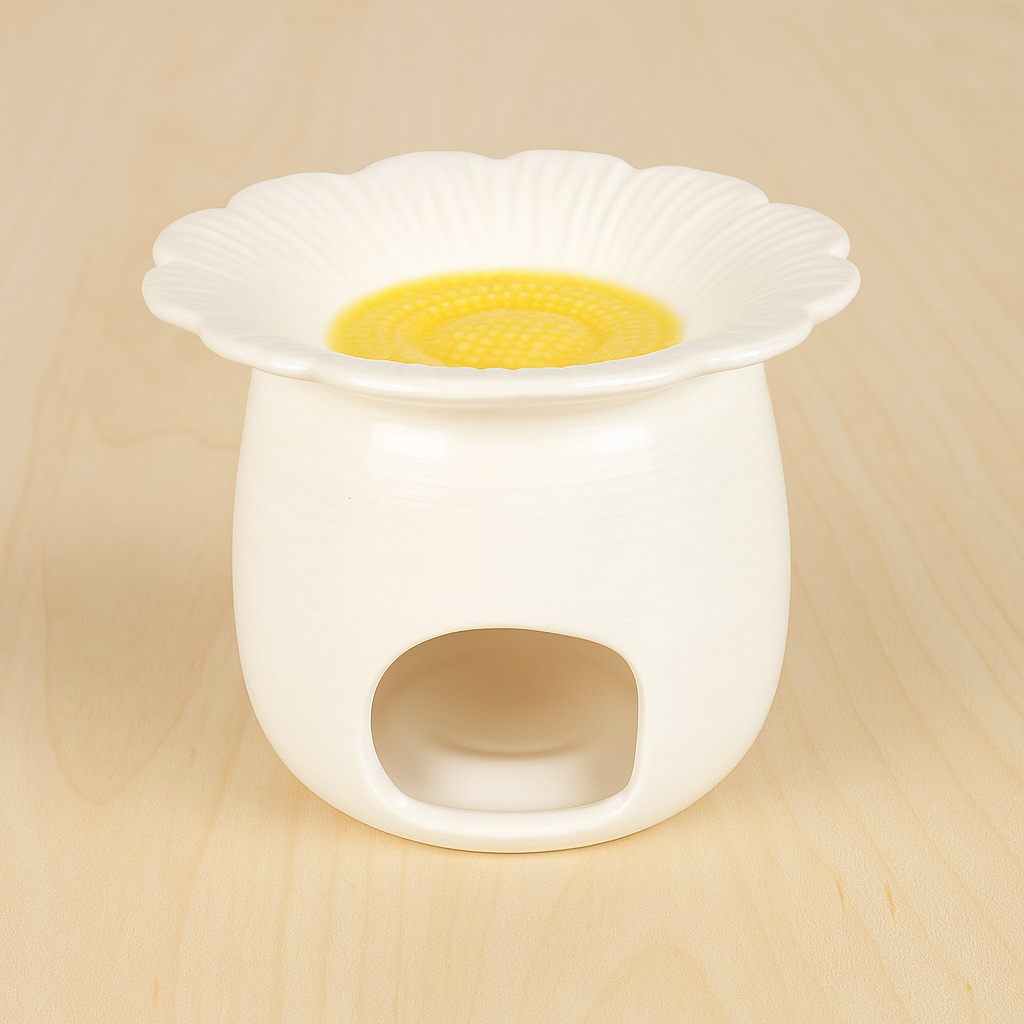 Le principe est simple : un brûle-parfum utilise une source de chaleur (généralement une bougie chauffe-plat) pour chauffer une matière parfumée placée dans le réceptacle supérieur.